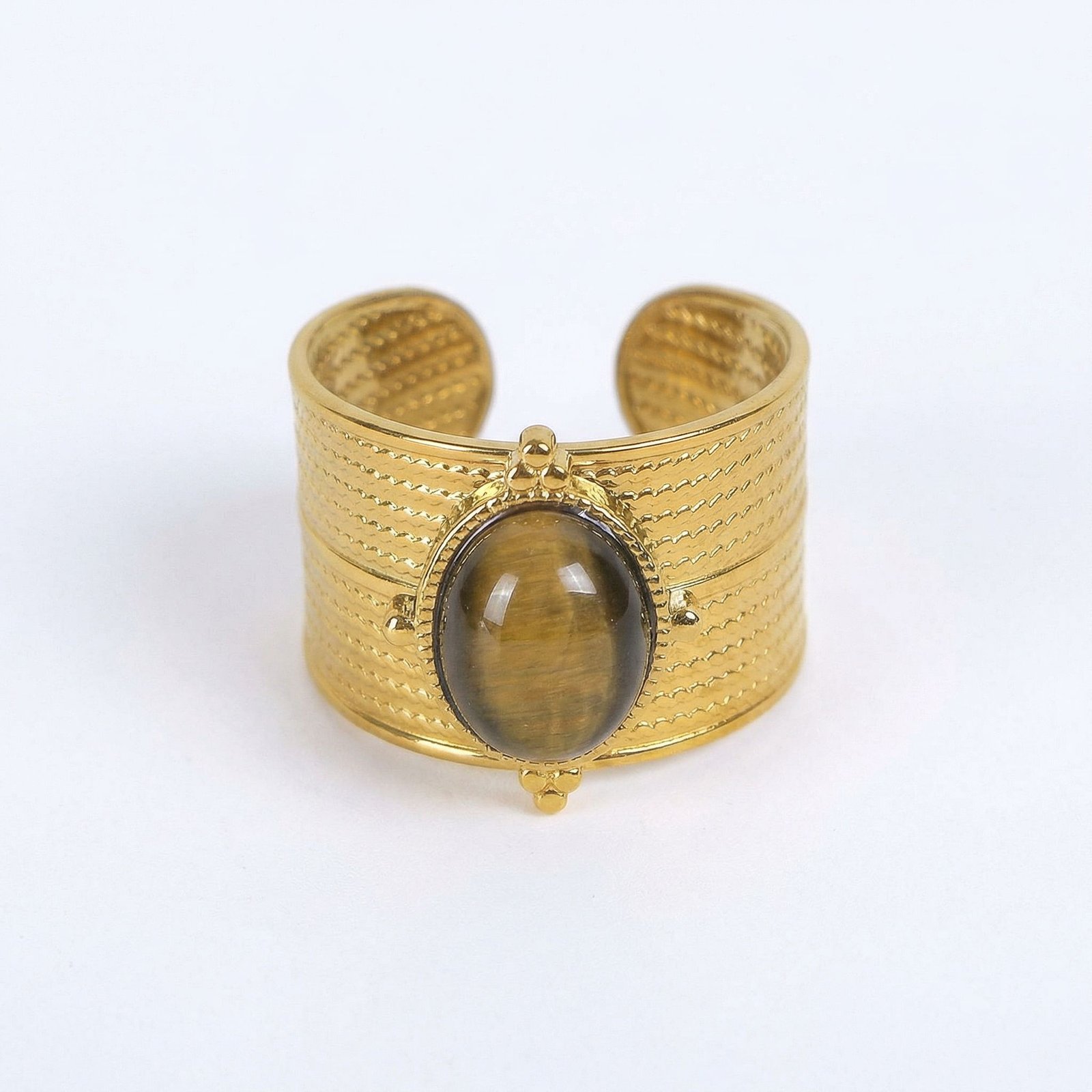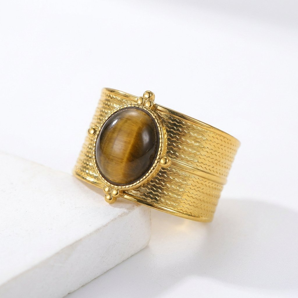 Gold Wide-Band Oval Stone Ring